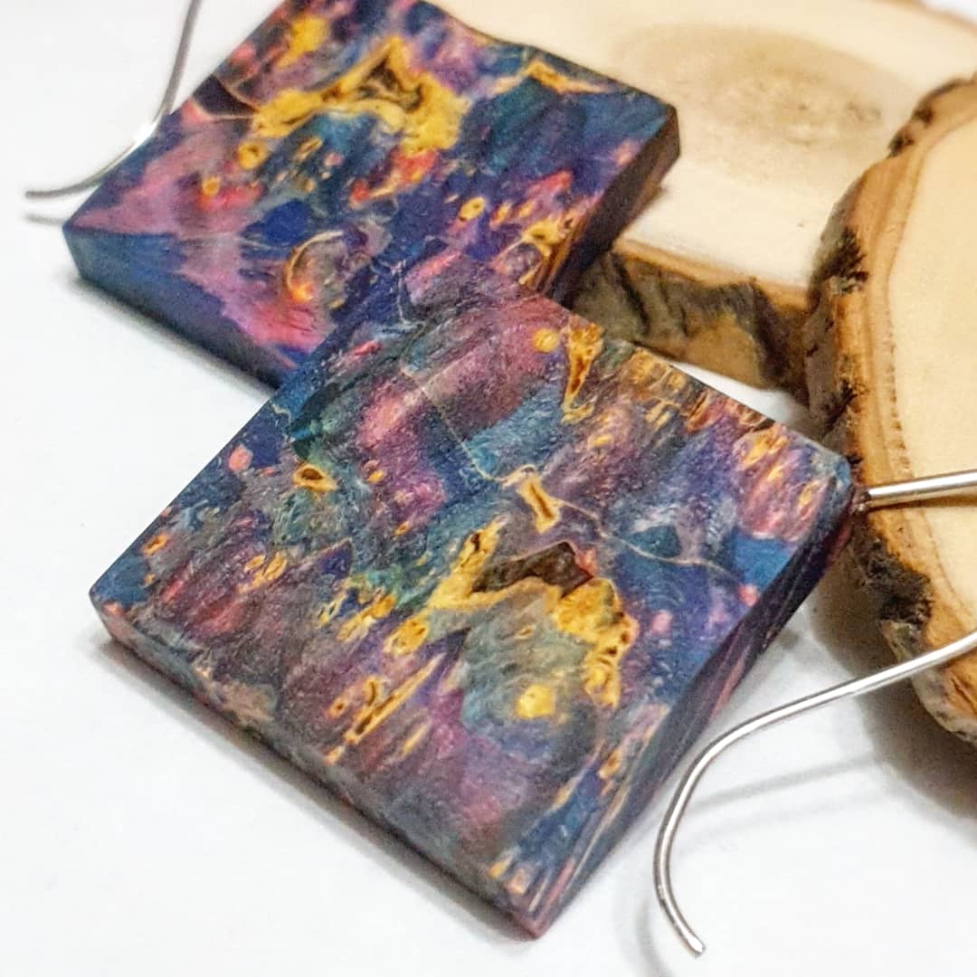 Серьги из стабилизированной древесины.